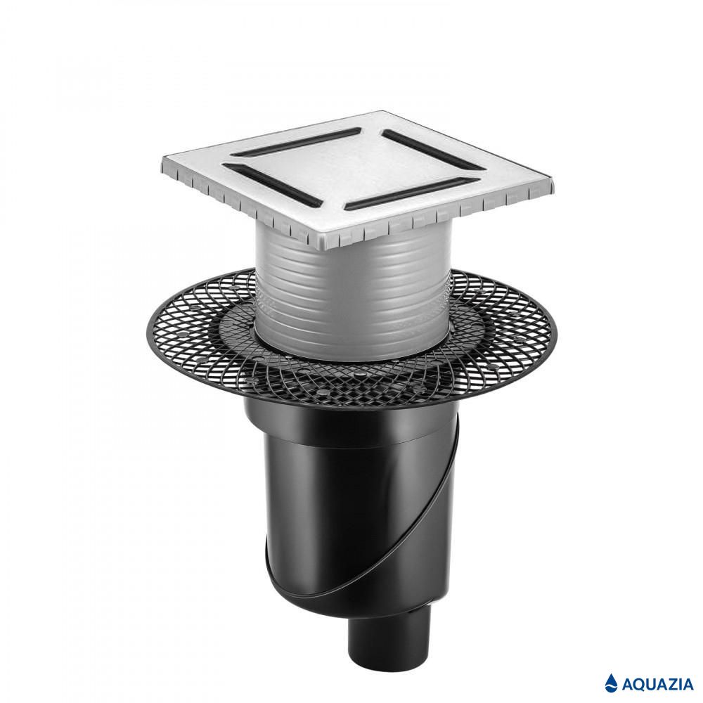Трап водосток PLATZ Norma 150х150 Вертикальный выпуск (Матовый хром)